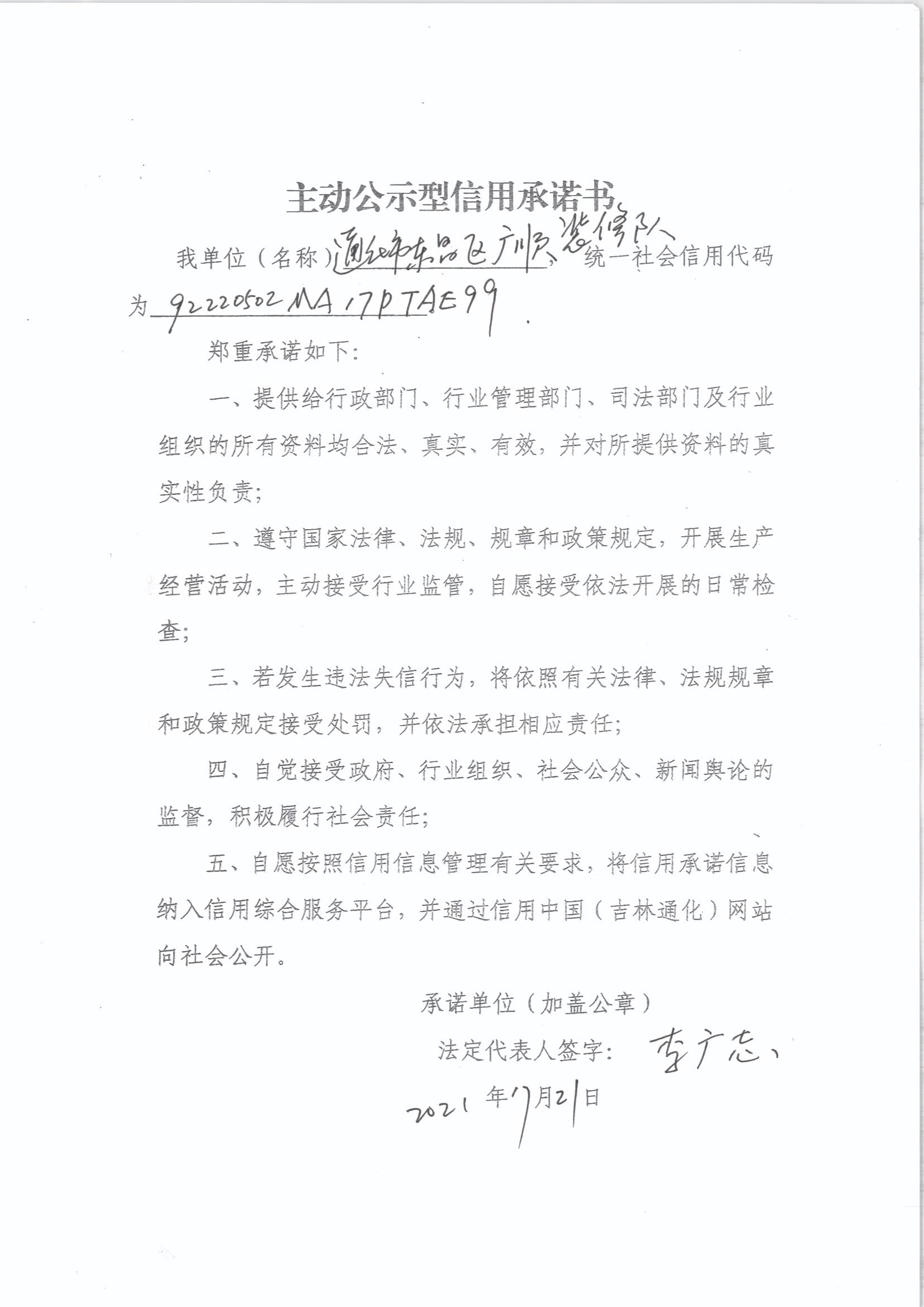 企业承诺