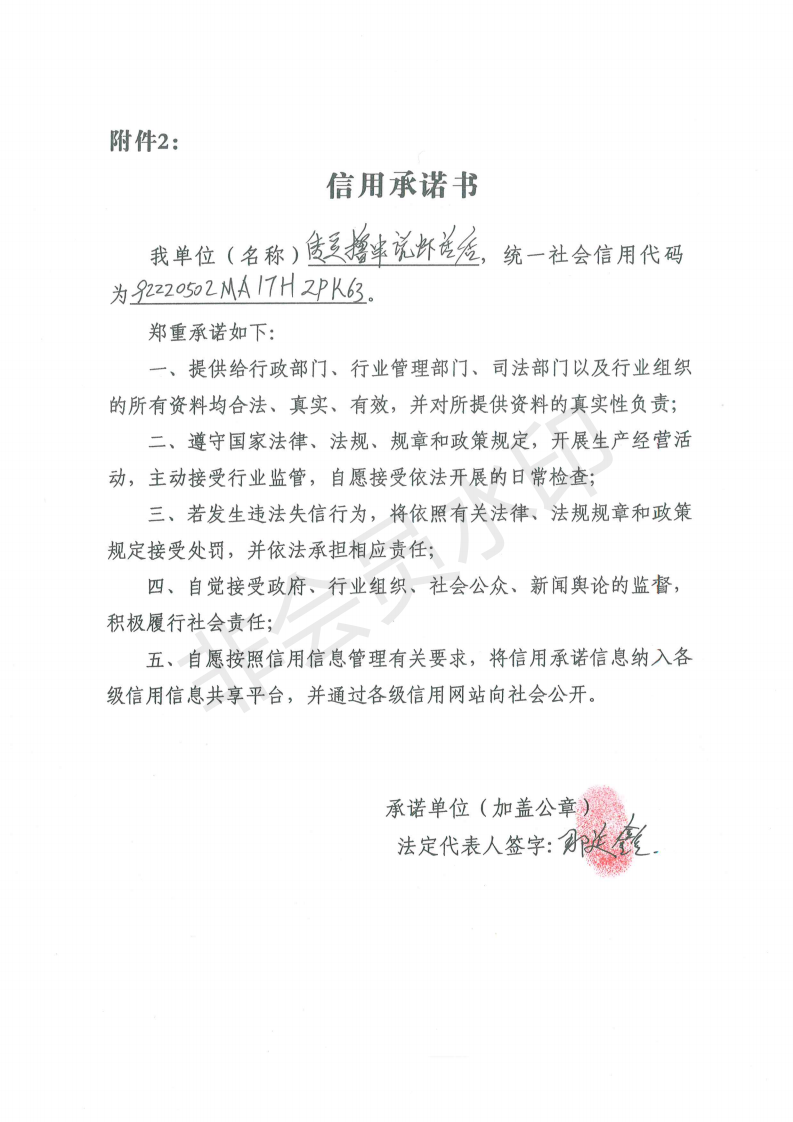 企业承诺