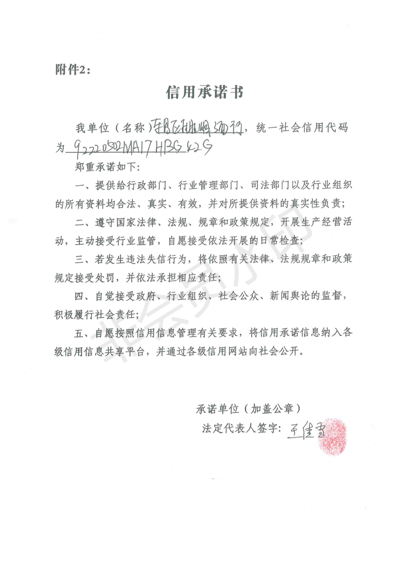 企业承诺