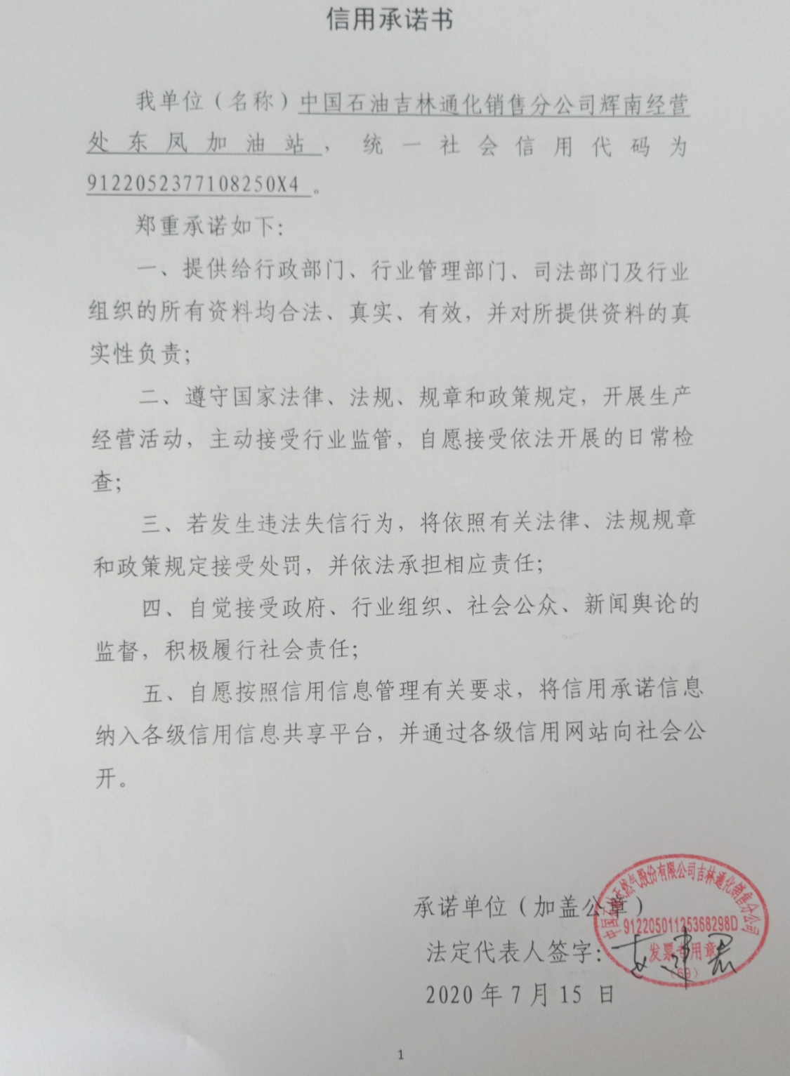 中国石油股份有限公司吉林通化销售分公司辉南经营处东凤加油站